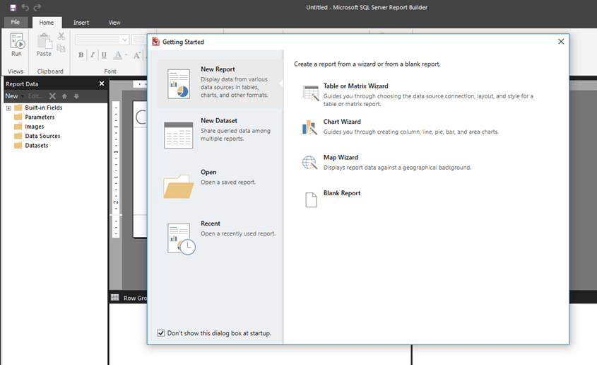 Langkah pertama, install terlebih dahulu aplikasi Report Builder. Anda bisa mencari halaman web untuk mengunduh aplikasi tersebut di web Microsoft. Selanjutnya buka aplikasi Report Builder yang sudah anda install dan masuk ke server tempat anda ingin membuat report. Langkah kedua, pada tampilan aplikasi di bagian new report, pilih blank report.