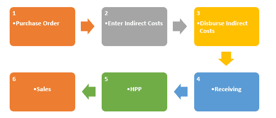 Kemudian system akan melakukan proses disbursement atas semua biaya tersebut dibagi dengan jumlah barang yang akan diterima. Dan pada akhirnya ketika proses Receiving barang dilakukan oleh pihak Gudang, maka pada saat itu pula kita sudah memiliki nilai HPP yang sesungguhnya sebagai dasar penentuan harga jual.
