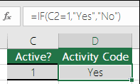 For example, =IF(C2=”Yes”,1,2) says IF(C2 = Yes, then return a 1, otherwise return a 2).